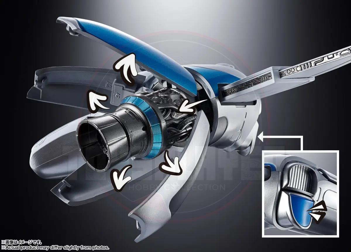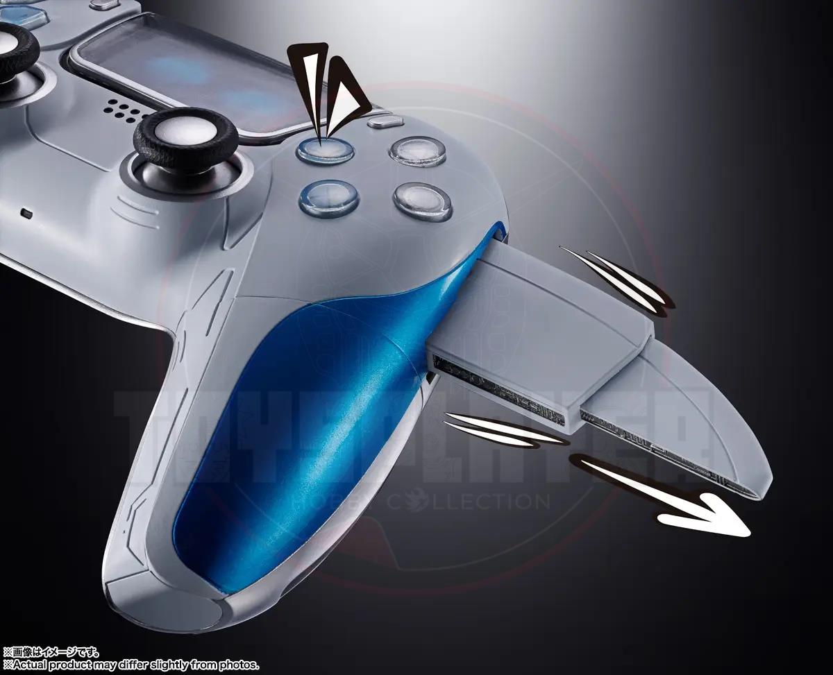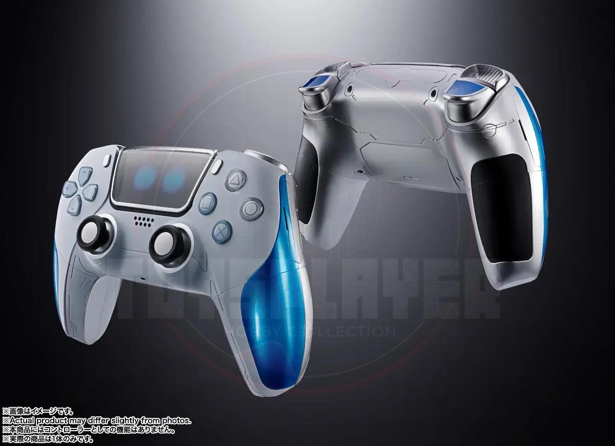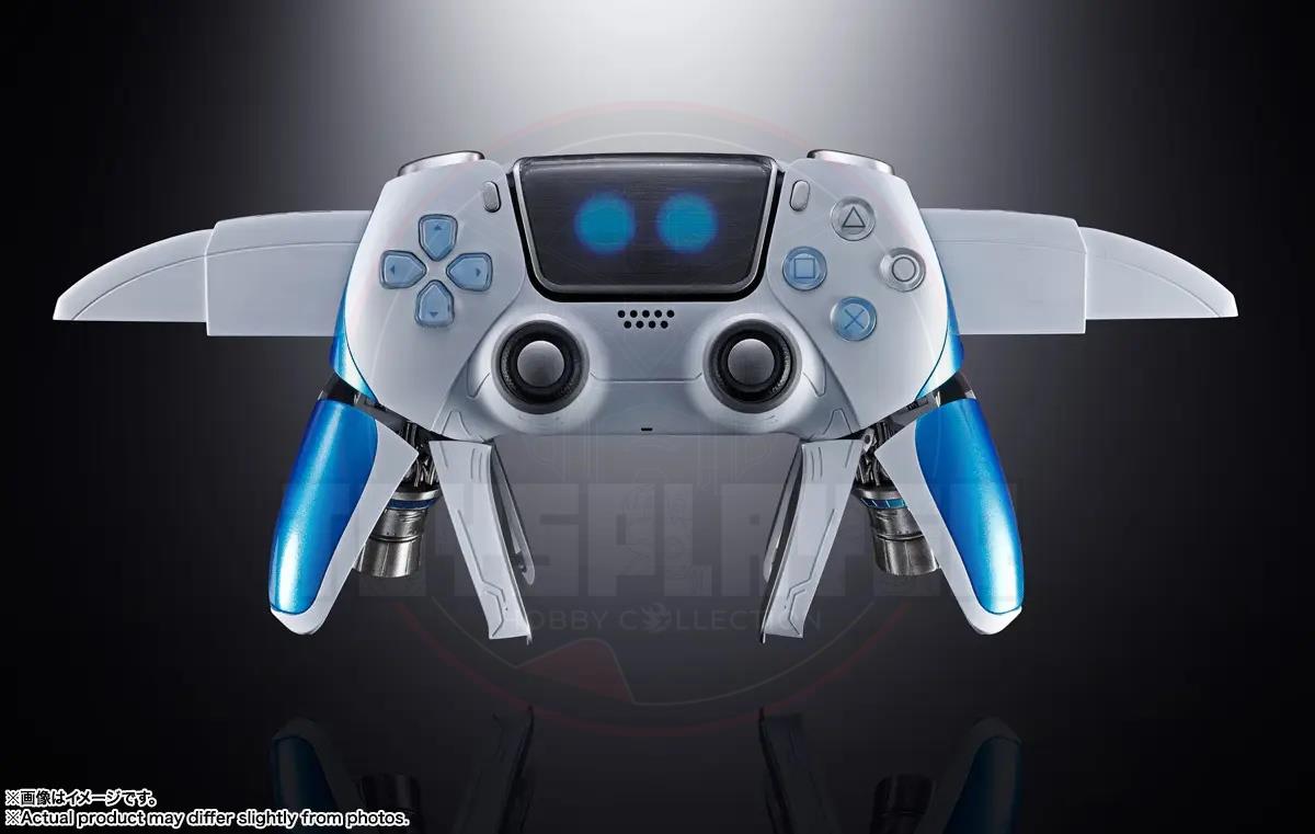 Astro Bot from the hit PlayStation 5 title "Astro Bot" joins the "Chogokin" series from Bandai, together with his transforming spaceship, the Dual Speeder, shaped like the DualSense Wireless Controller! The transformation from controller to spaceship is recreated using an original gimmick that gradually transforms by pressing various buttons. You can press the Square or Triangle buttons to pop out wings from the sides pof the unit! Press the L2 or R2 buttons to pop out the grip section, revealiong the engine nozzle. The engine nozzles also light up thanks to LEDs! Astro Bot has movable arms and legs, and his face changes expression thanks to a lenticular effect! The PlayStation 5 DualSense Wireless Controller was 3D-scanned to precisely recreate its form. The dedicated display base features illustrations of Astro and the Dual Speeder, and joint parts are included to display the Dual Speeder in flight mode. It can also be displayed in controller form; a display stand modeled after the DualSense Charging Stand is included. It's a near-life-size sculpture, and it feels just like a controller in your hand! All the buttons are spring-loaded, and it's made of super alloy die-cast parts for a pleasant weight in the hand. Order yours today!