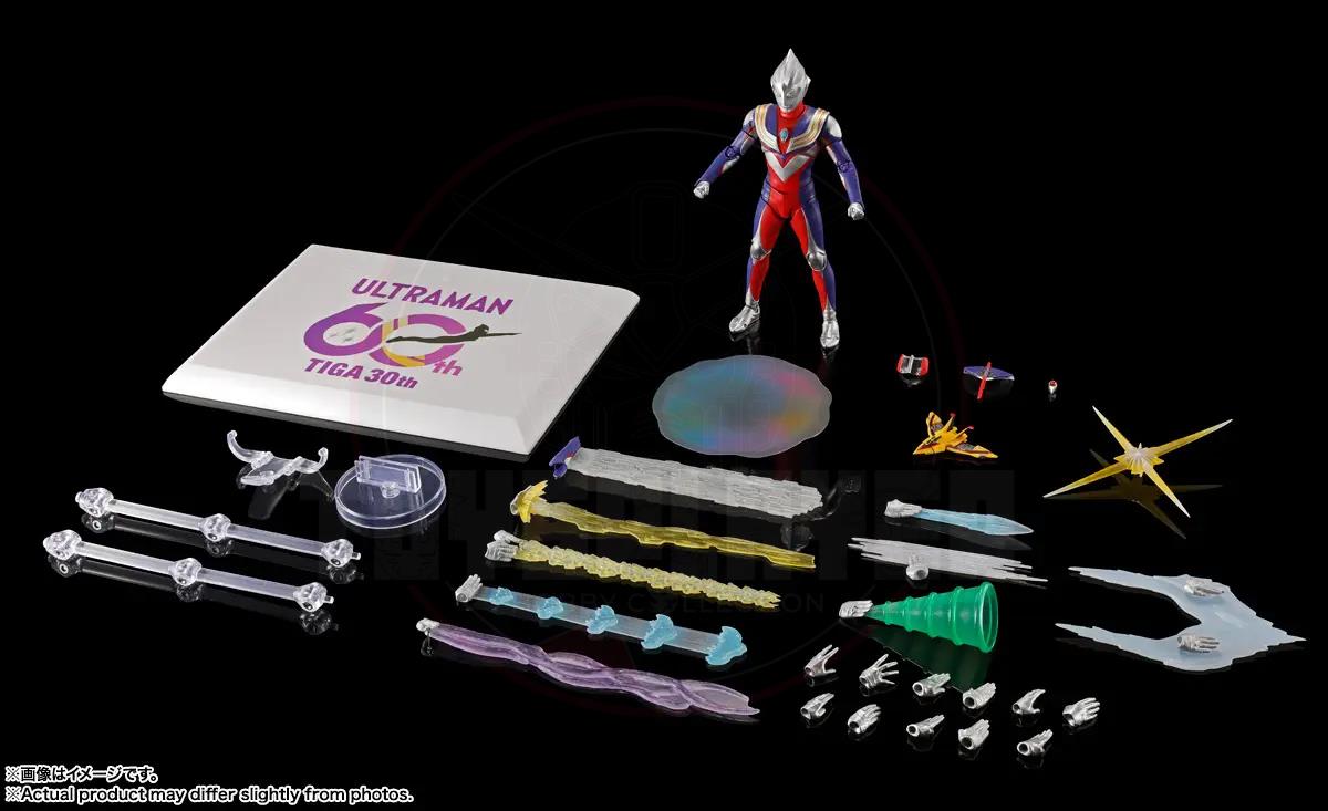 To commemorate the 30th anniversary of Ultraman Tiga, Ultraman Tiga Multi Type returns to the S.H.Figuarts (Shinkocchou Seihou) series as a 30th Anniversary Edition! It includes a variety of new effect parts to recreate the various beam techniques used in the TV series, along with newly implemented light-gathering parts for the eyes and Color Timer. A commemorative display stand featuring the Ultraman Tiga 30th Anniversary logo is also included.