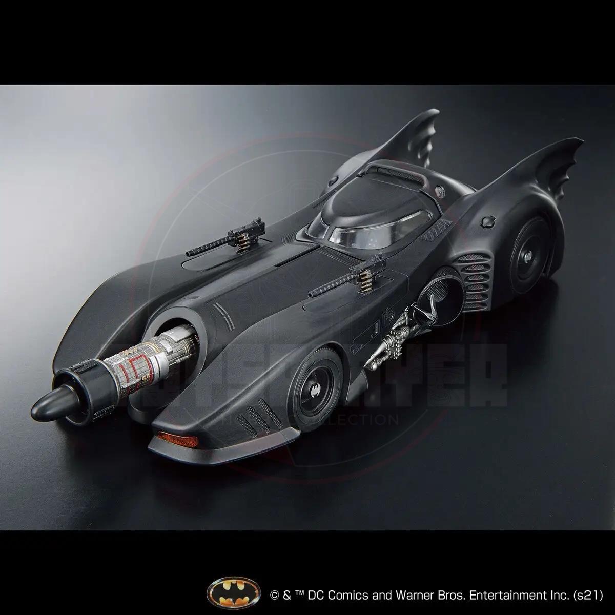 The Batmobile as seen in 1989's Batman movie is now available in model-kit form from Bandai! This 1/35-scale kit offers accurate reproduction with precision carved parts; the exterior is now made of a matte material to express the profound texture of the vehicle, and the roof part can slide open and closed. The cockpit interior and mechanical details are precisely reproduced, and the turbine engine is also molded in incredible detail. The machine guns and rocket anchors can be deployed and stored by parts replacement. You'll love it -- order yours today!