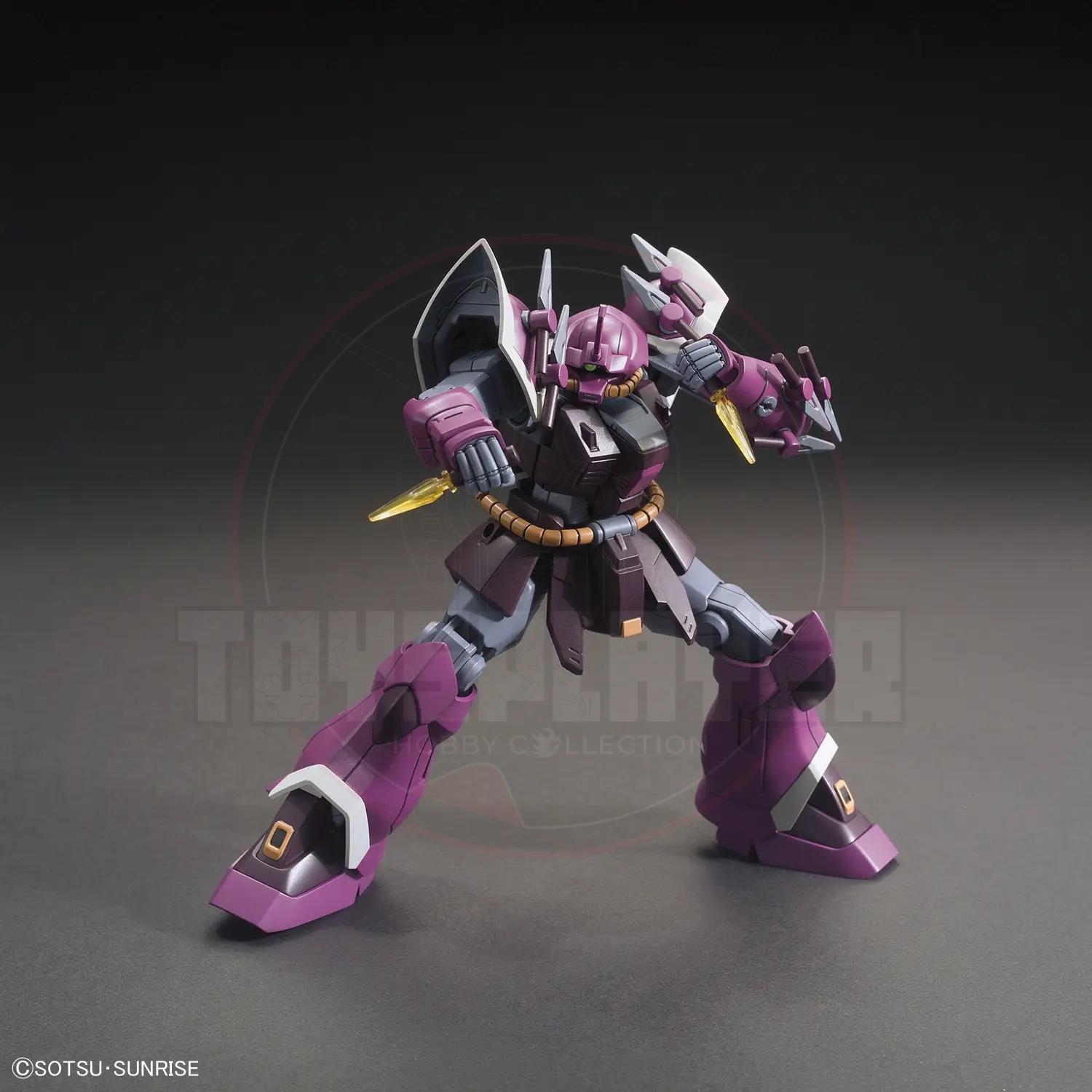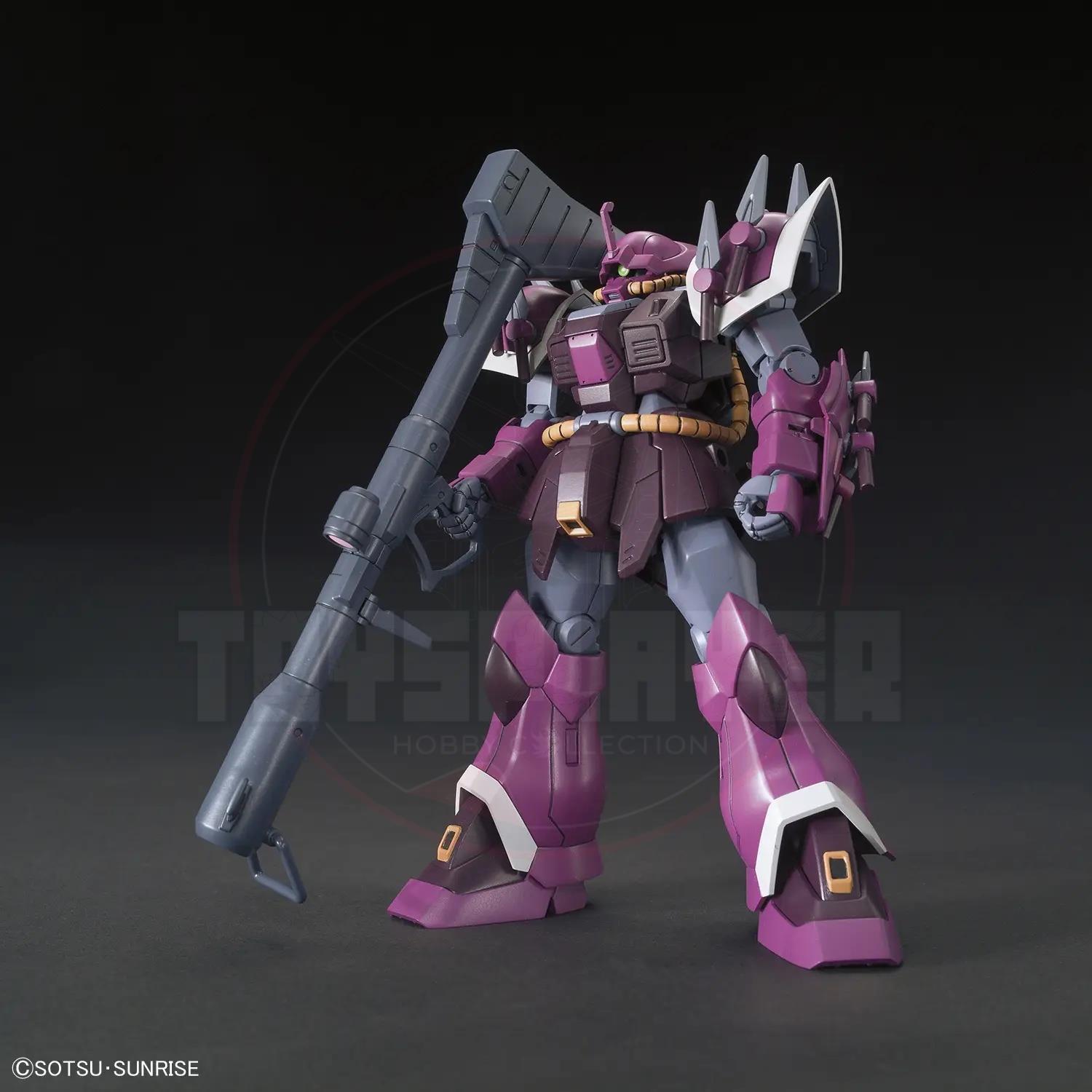 The MS-08TX/S Efreet Schneid from "Gundam Unicorn" joins the HGUC lineup from Bandai! Fred Reber's mount features 14 kunai-like Heat Darts, which can be used in the Giant Bazooka; two more Heat Darts are included for handheld use. It's molded in color with fast and easy snapfit assembly; stickers are provided for the markings.