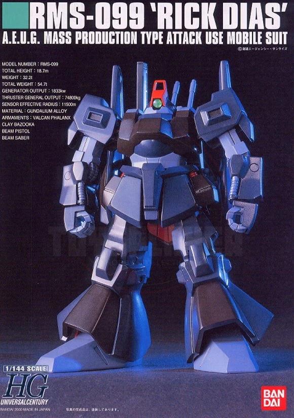 Along with the Hyaku-Shiki (Type 100), the Rick Dias is one of the most popular mecha from Zeta Gundam as it was designed by Mamoru Nagano of L-Gaim and Five Star Stories fame. This new kit does it justice, featuring overall slimmer, sharper proportions than the chunky High Complete Model or 1/100 kit of many years ago. As usual for kits in the High Grade series, it's molded in color, features snap assembly, and has poly-caps for all the moving joints.