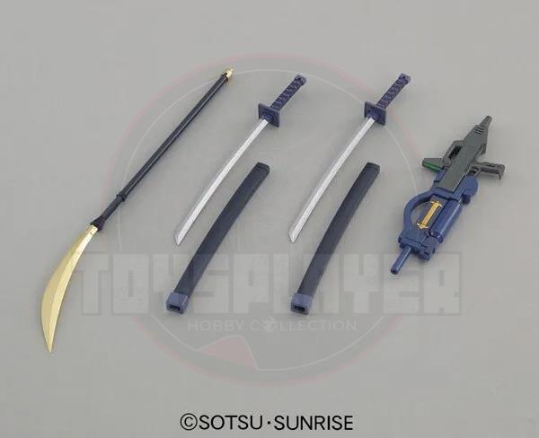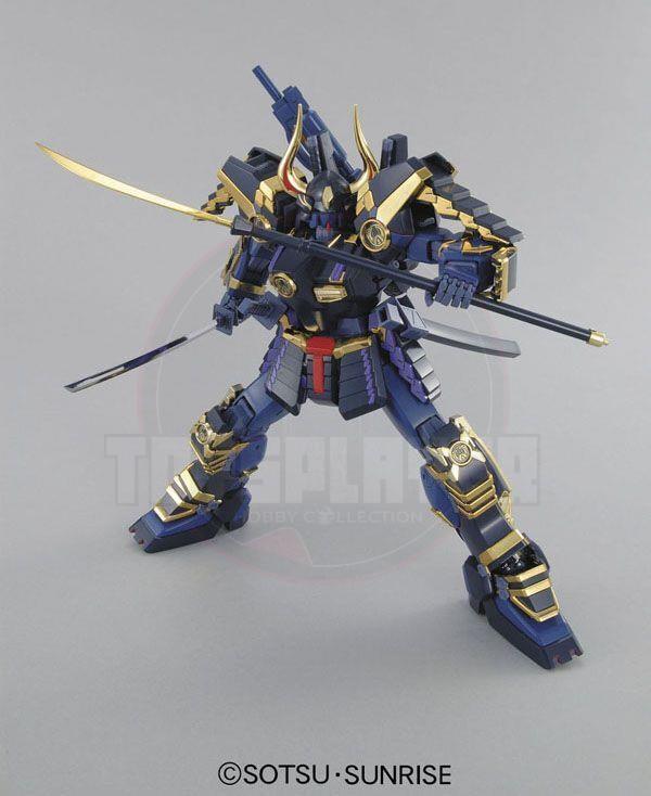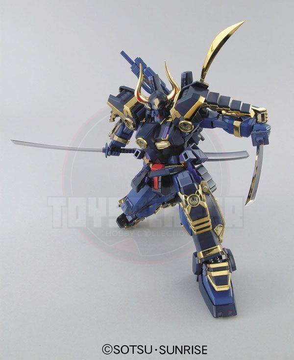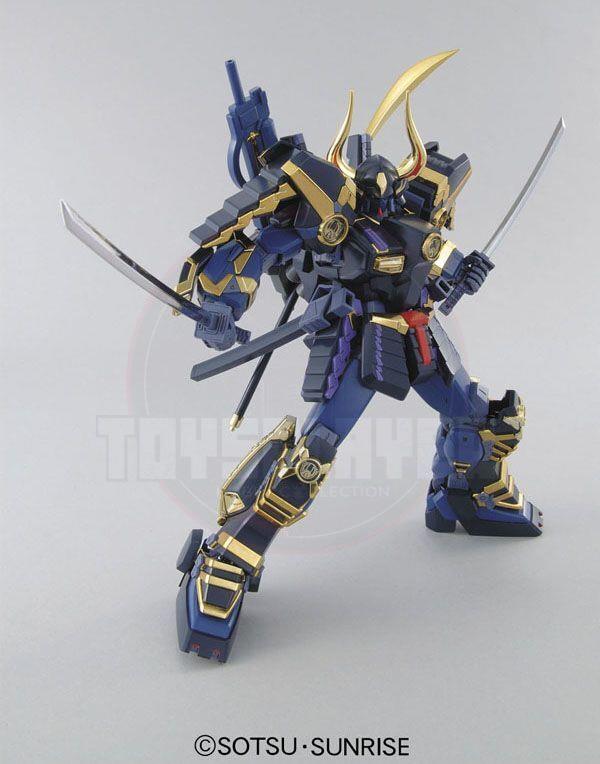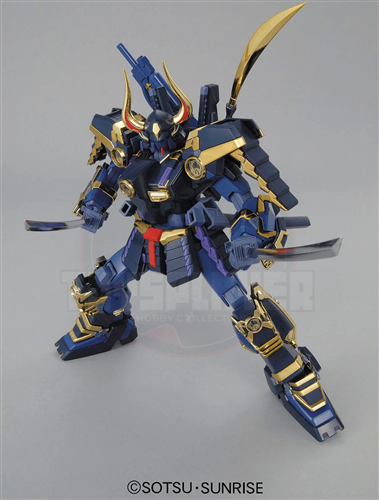 This design of Musha Gundam MK-II is featured in the Dynasty Warriors Gundam video game series and features gold stylized markings all over its body and Japanese themed weapons, including: two Kotetsu Maru swords, the Shoruy Maru gun and the Senkou Maru Naginata.
