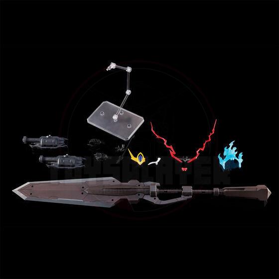 The set features the Valkyrja Buster Sword, a massive weapon originally wielded by the Helmwige Reincar, along with blueflame shoulder vent effect parts. It also includes optional effect parts that replicate the Alaya-Vijnana System limiter release!
