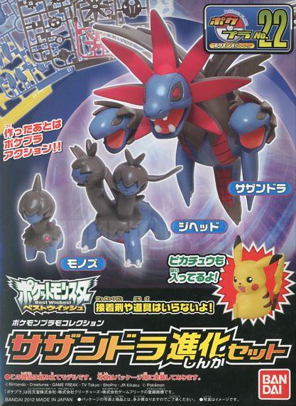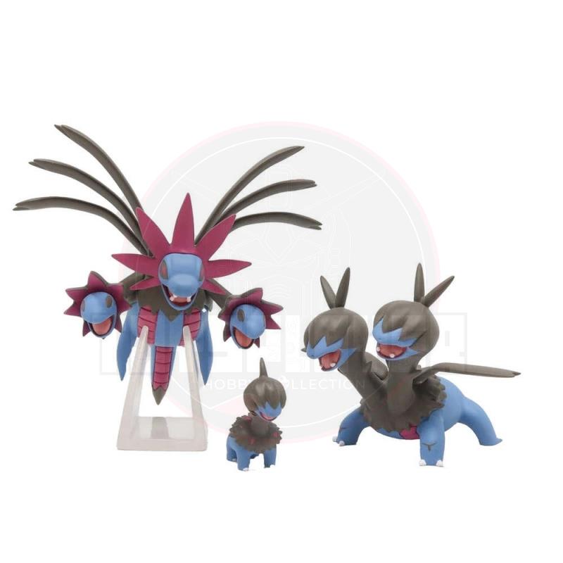 This simple snap-fit plastic kit set allows modelers to build Pikachu and three evolution forms of Hydreigon, consisting of Deino, Zweilous, and a slightly articulated Hydreigon. Move Hydreigon's head to simultaneously move its arms! All parts come molded in color and a sheet of stickers is provided for detail so no painting is required.