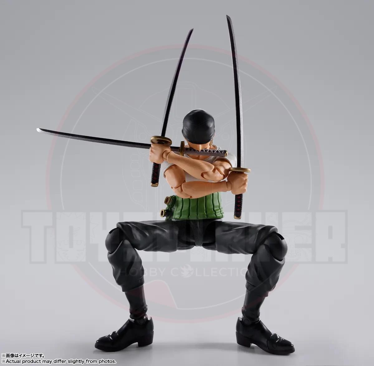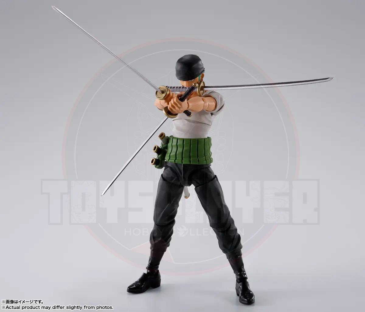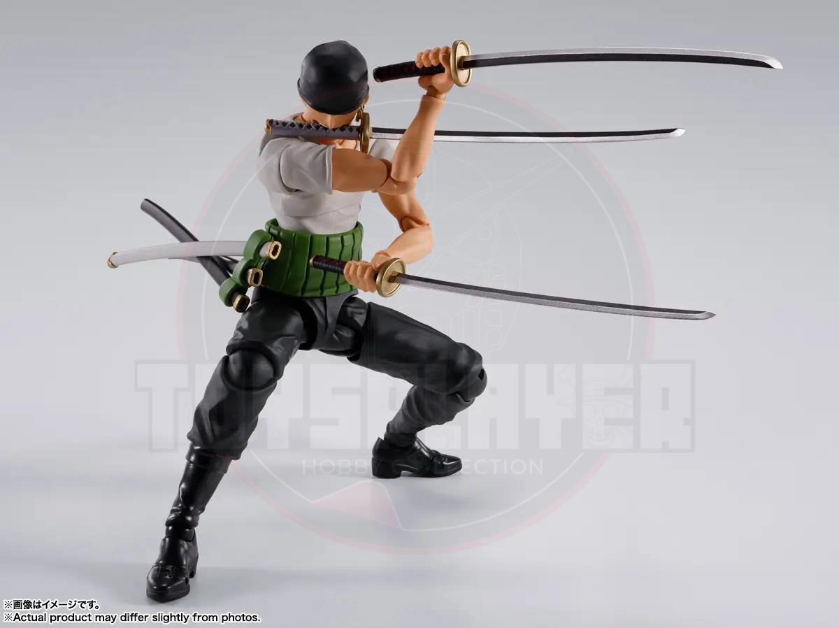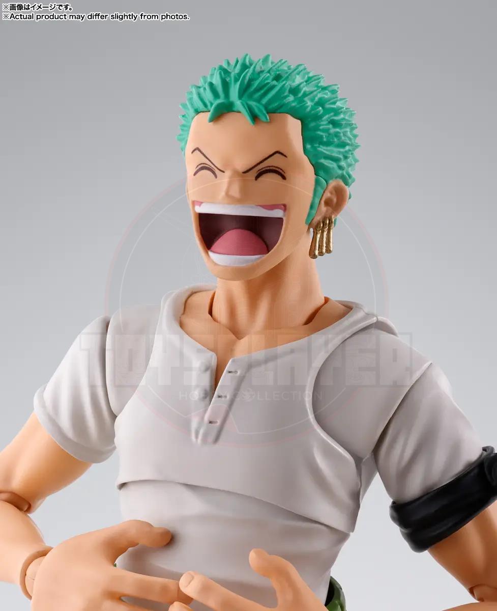 This One Piece Roronoa Zoro Romance Dawn S.H.Figuarts Action Figure stands slightly under 6-inches tall and features a Zoro in his East Blue costume! Dynamic poses are possible by using soft parts in addition to the overwhelming range of motion.