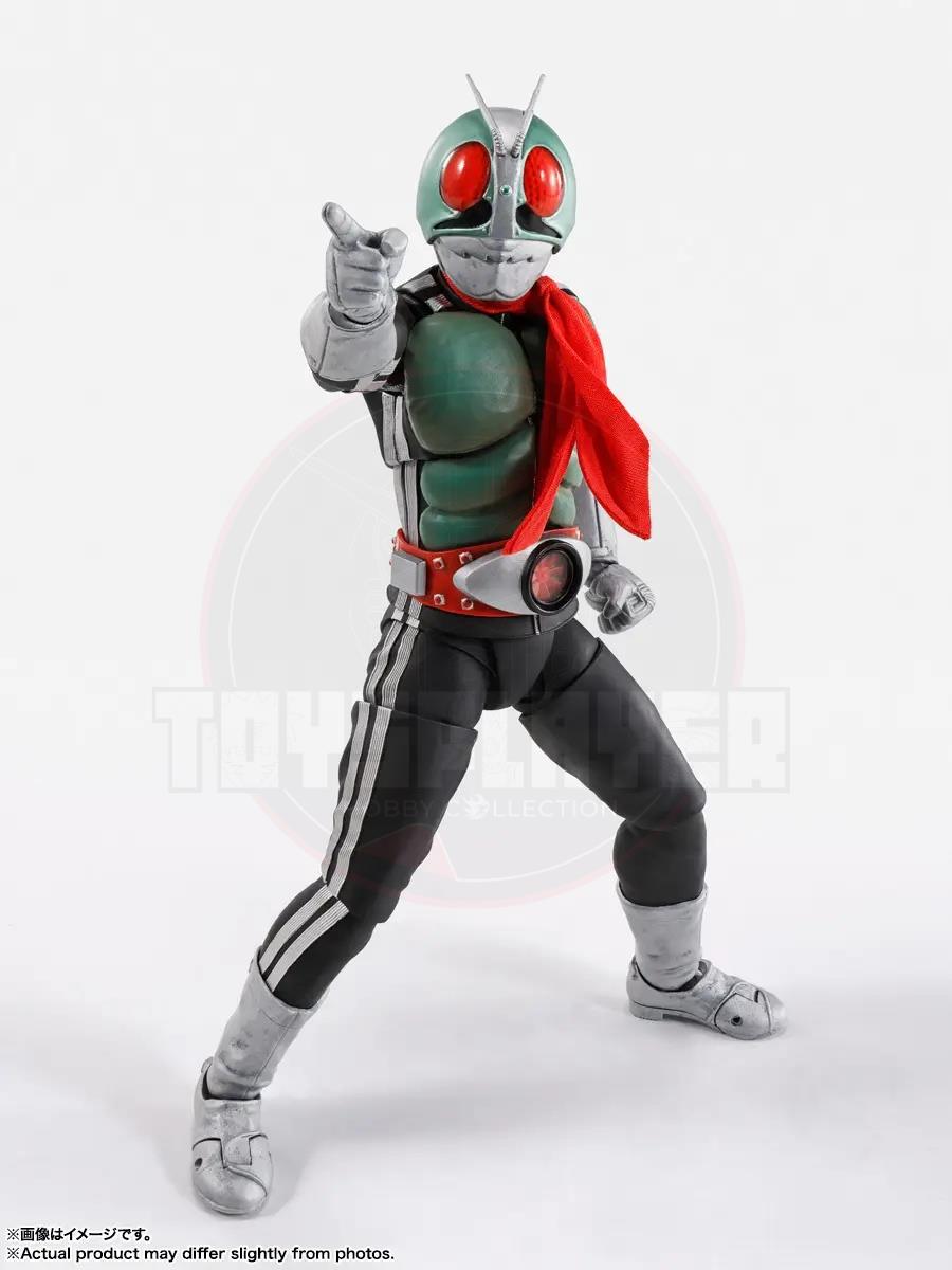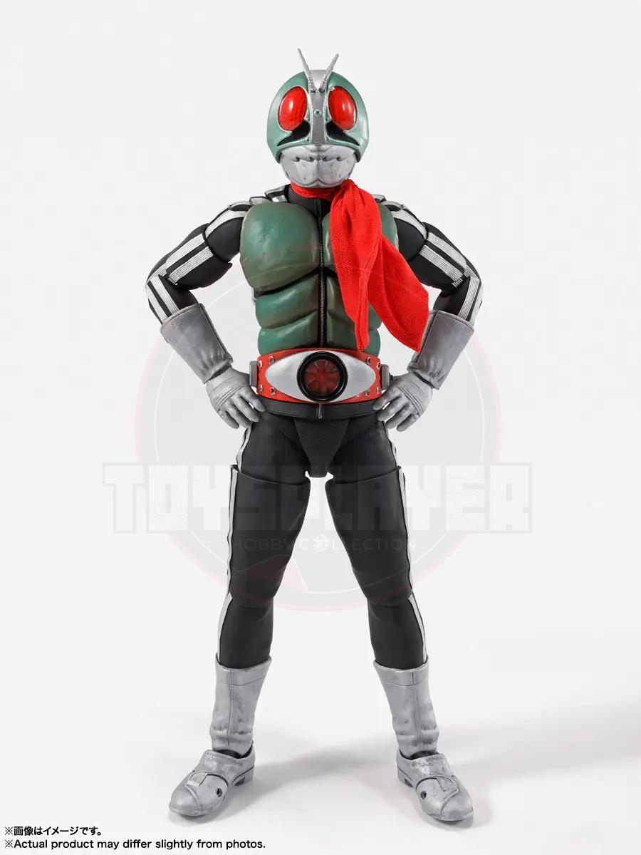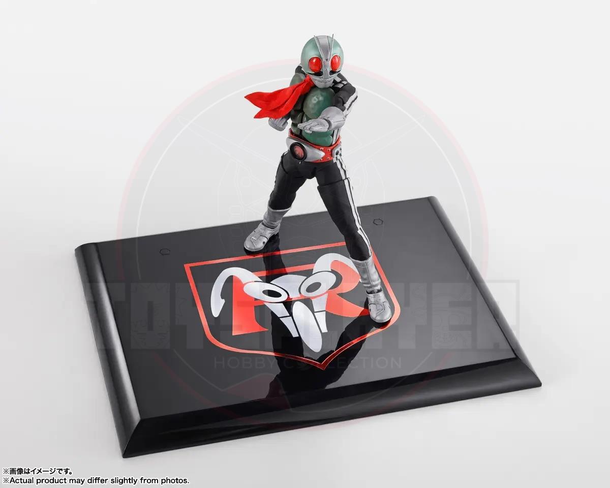 S.H.Figuarts (SHINKOCCHOU SEIHOU) MASKED RIDER 1 is now available in this Legendary Showa Masked Riders edition, with revised coloring and a new scarf made of cloth material around his neck! New interchangeable hand parts and a scarf made of PVC are included in this robust set. To commemorate the start of the Legendary Showa Masked Riders editions, a pedestal decorated with the "Tachibana Racing Club" symbol is also included in the initial release.