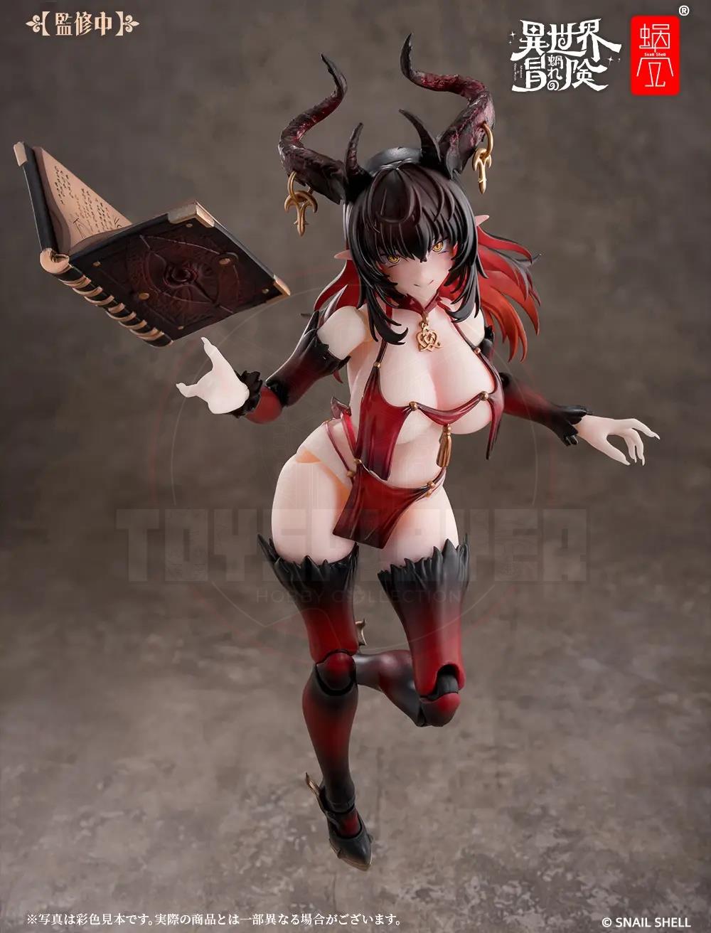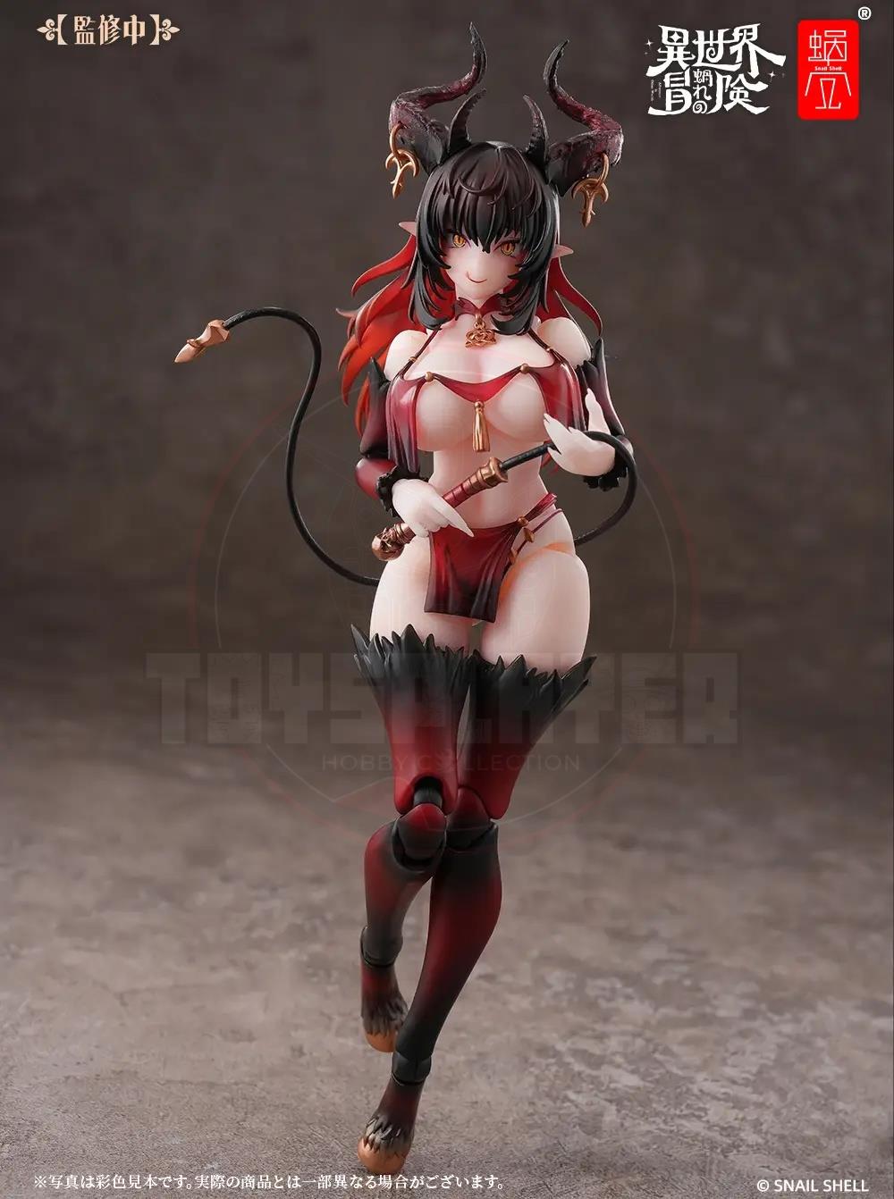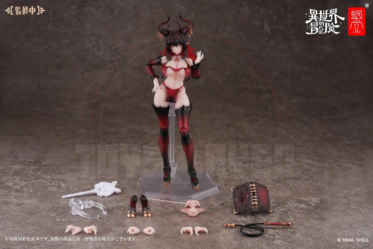 Snail Shell debuts "My Otherworldly Adventure," their new action figure series with a fantasy RPG-like worldview, with Succubus-Lustia! Lustia is an incredibly posable 1/12-scale action figure, ready to make your dreams come true! She comes with two interchangeable faces (a smile, and an expression with her tongue sticking out), both with fully movable eyeballs! Four sets of interchangeable hands are included too, all with long, elegant nails, and she also has an interchangeable set of goat feet in the event you get tired of seeing her in high heels. Her whip is made with a posable wire inside, and she wears golden accessories that further enhance her magical appearance. Order her for your own collection today!