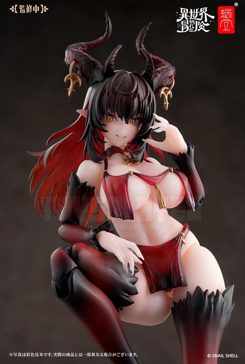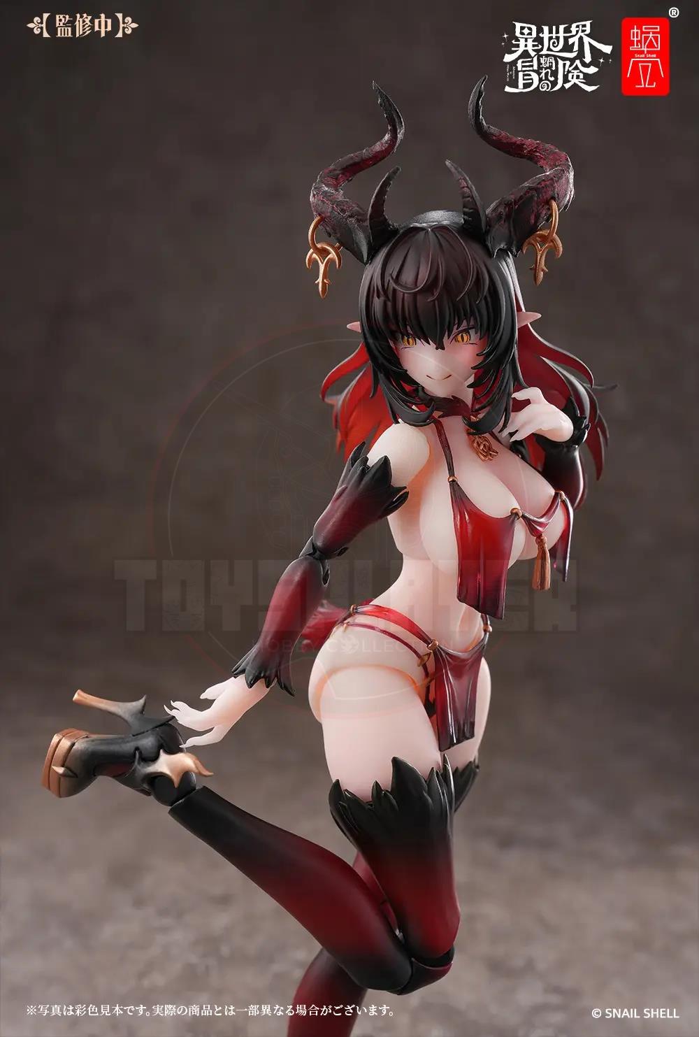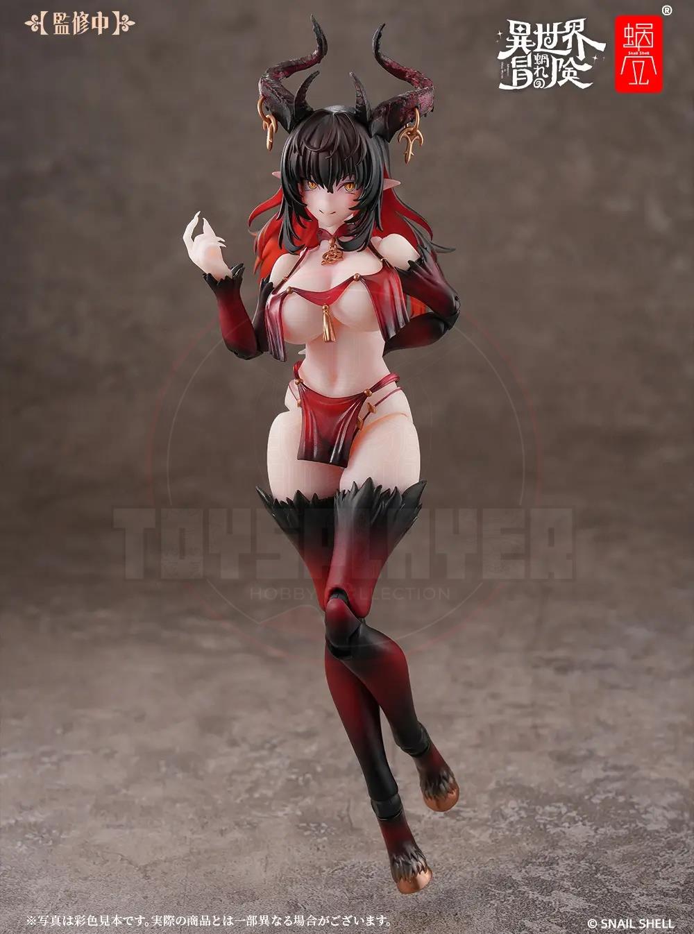 Snail Shell debuts "My Otherworldly Adventure," their new action figure series with a fantasy RPG-like worldview, with Succubus-Lustia! Lustia is an incredibly posable 1/12-scale action figure, ready to make your dreams come true! She comes with two interchangeable faces (a smile, and an expression with her tongue sticking out), both with fully movable eyeballs! Four sets of interchangeable hands are included too, all with long, elegant nails, and she also has an interchangeable set of goat feet in the event you get tired of seeing her in high heels. Her whip is made with a posable wire inside, and she wears golden accessories that further enhance her magical appearance. Order her for your own collection today!