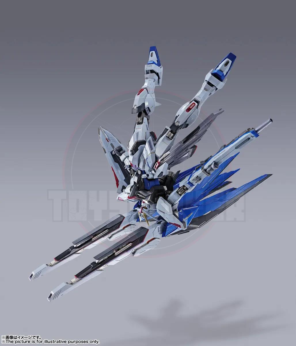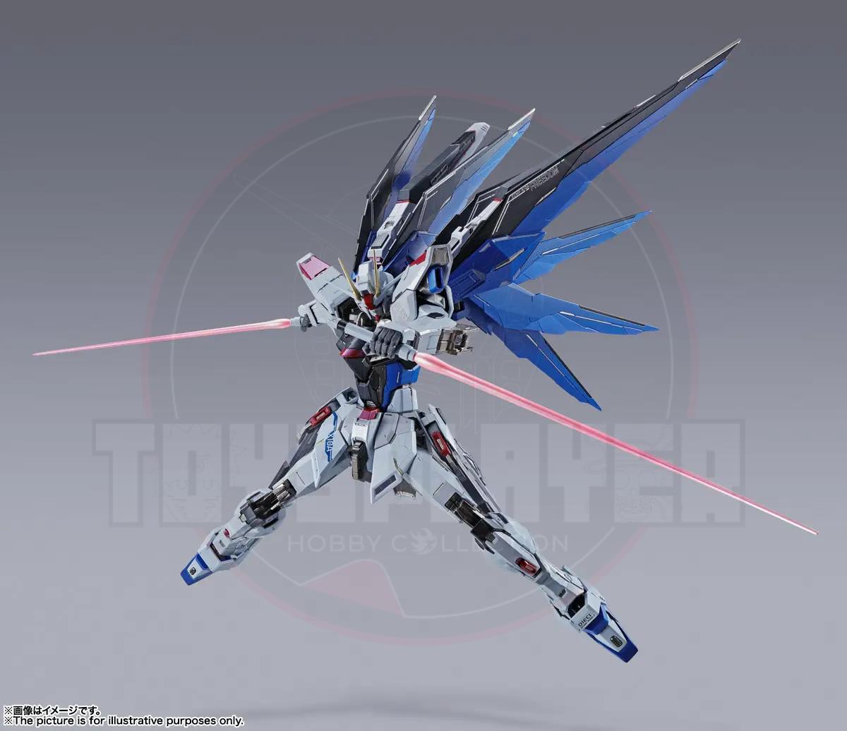 FREEDOM GUNDAM Revived! A new interpretation of this iconic Gundam brings the wings of freedom to METAL BUILD once again! Each weapon is reproduced with a new gimmick different from the previous variation, which when combined with the fully poseable wing parts allow for the recreation of the "Hi-MAT FULL BURST". The wings mounted with front and rear movable axles make for an impressive silhouette from any angle.