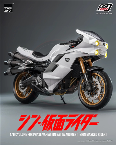 From the movie "SHIN MASKED RIDER," threezero's next item is FigZero 1/6 Cyclone for Phase Variation Batta Augment (SHIN MASKED RIDER)! It precisely captures the color schemes of the motorcycle as seen in the movie featuring a highly detailed sculpt.