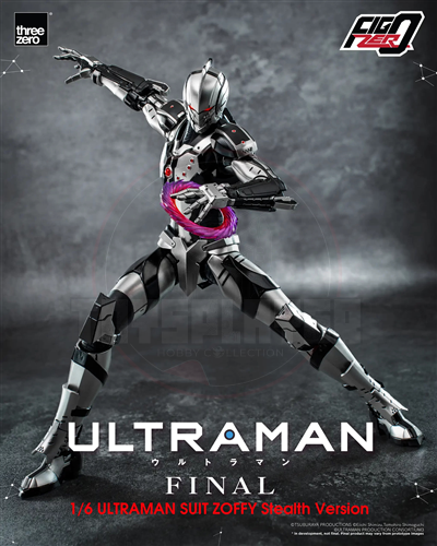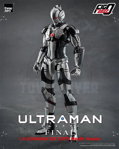 FigZero 1/6 ULTRAMAN SUIT ZOFFY Stealth Version is 1/6th scale figure standing approximately 30.5cm (~12”) tall, and is fully-articulated with over 40 points of articulation. The collectible has a detailed paint application and decals, and is constructed partially of die-cast zinc alloy and other metal parts. LED light-up features are installed at the eyes and the Color Timer on the chest, where its color is changed to red for this Stealth Version.