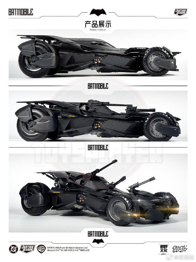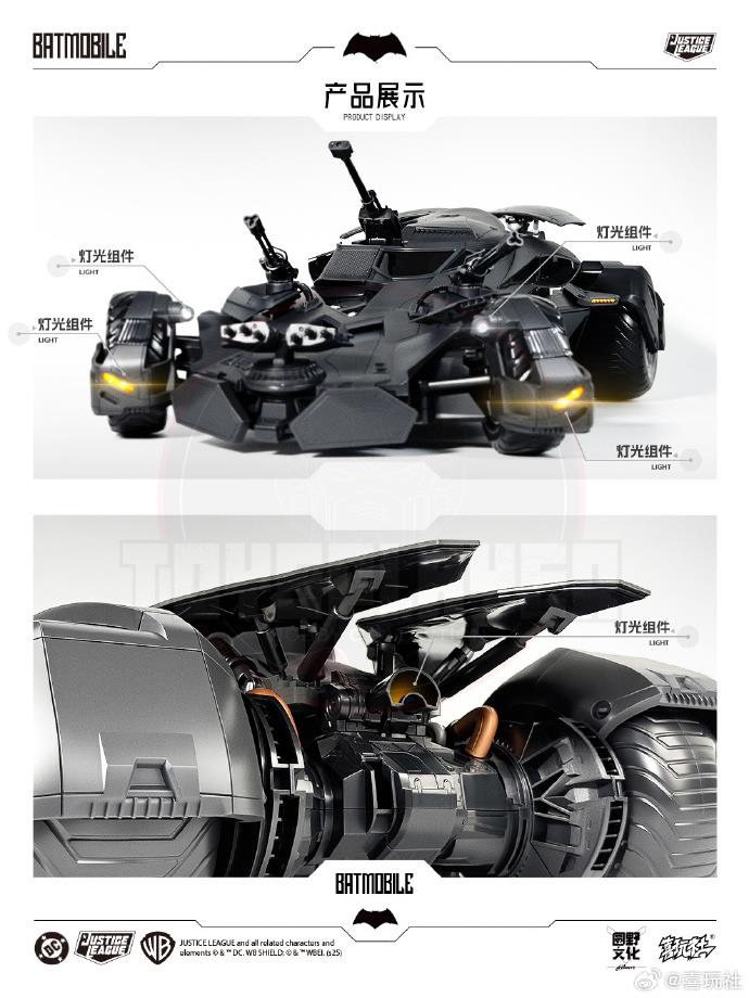 Equipped with both BvS and Justice League exterior and weapon components, easily interchangeable via magnetic technology. One vehicle, two iconic forms – paying tribute to two legendary movie scenes.